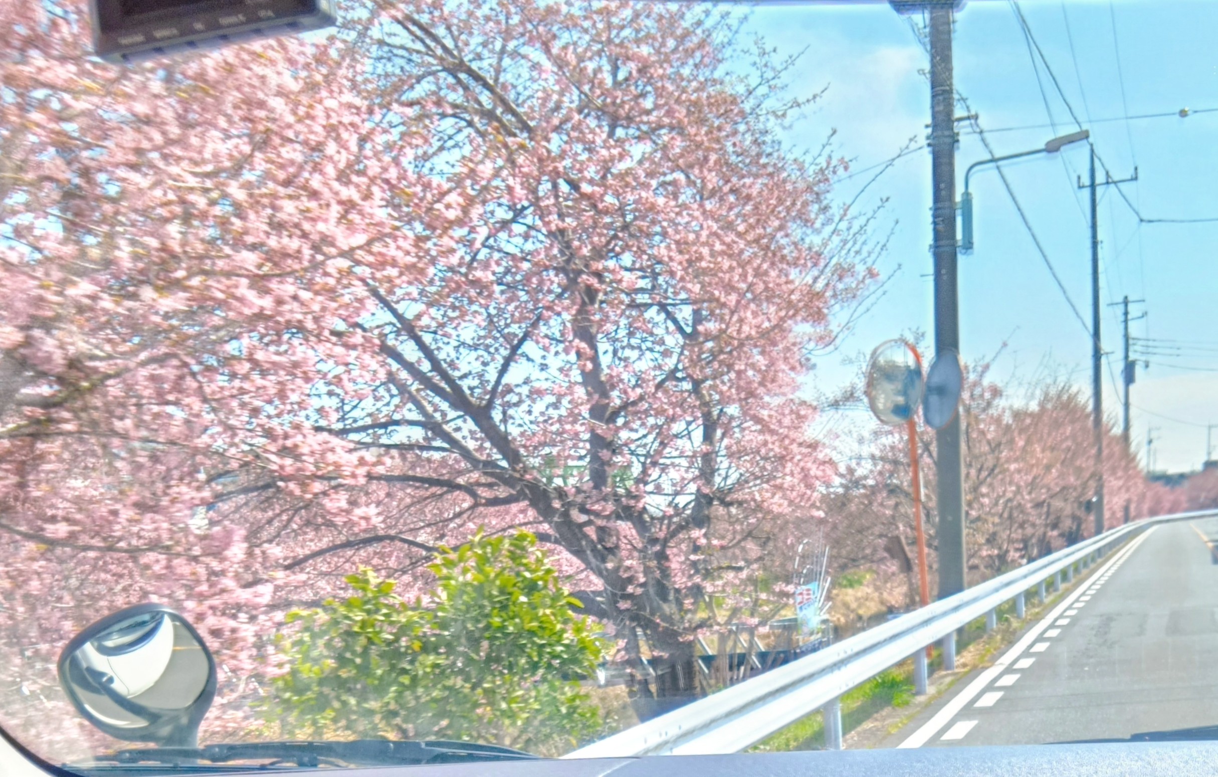 ・2月外出の日は早咲きの河津桜を見に行きました😊もう少しで満開です!お花見ドライブです😲「キレイだね〜」